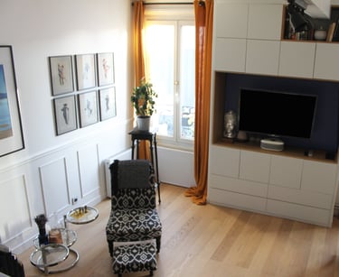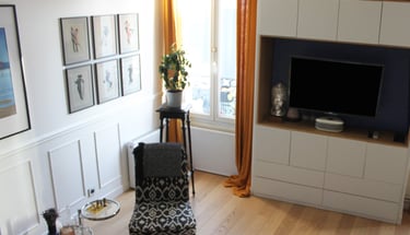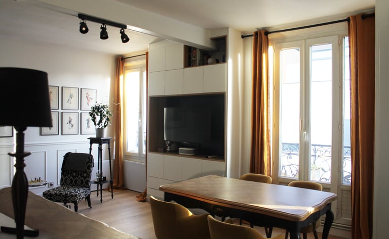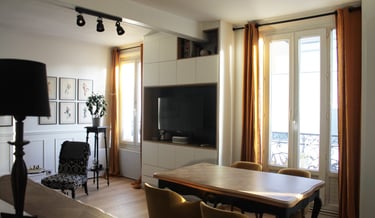 Appartement de 80m², la volonté était de dégager l'espace et créer un espace salon et salle à manger lumineux avec une optimisation des rangements.